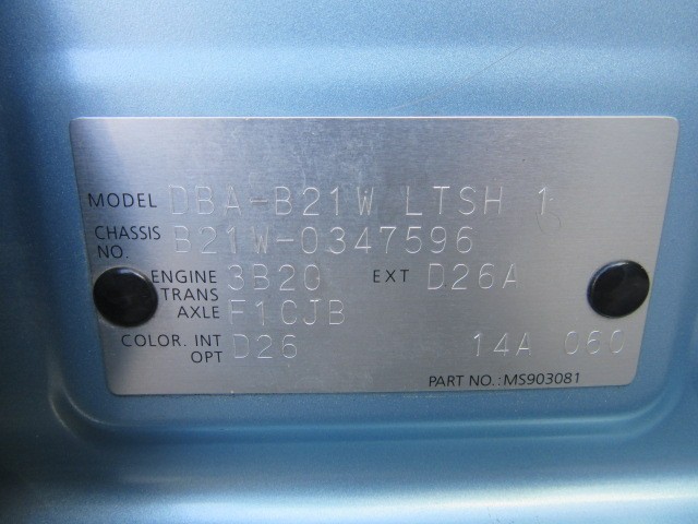 型式 DBA-B21W 原動機の型式 3B20