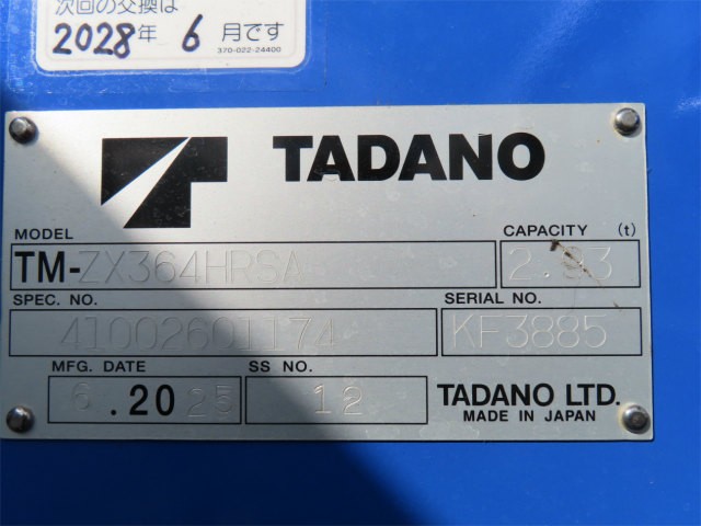 | 架装メーカー | タダノ | 架装型式 | TM-ZX364HRSA |