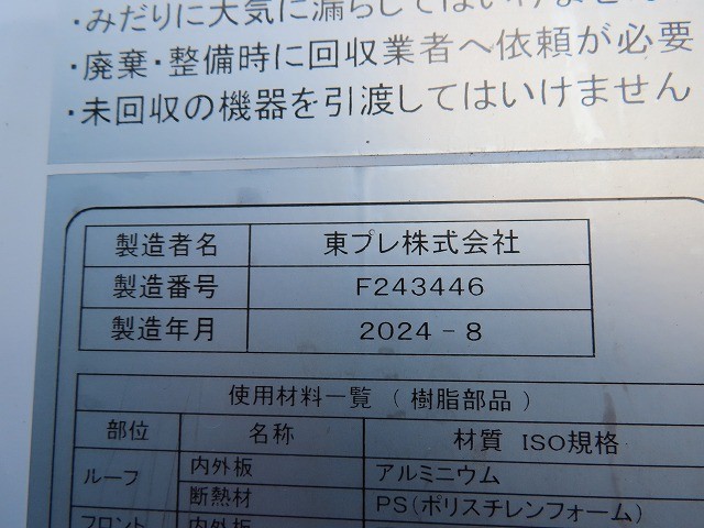 | 架装メーカー | 東プレ | 架装型式 | 冷凍機:XV32LOC-P |